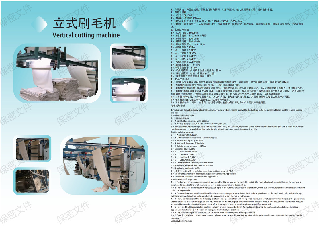 Machine à couper le velours | 12m /min | 9kw | 250cm * 235cm * 220cm |